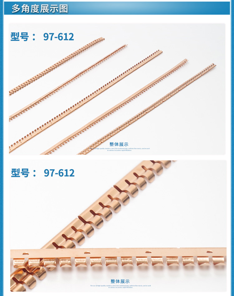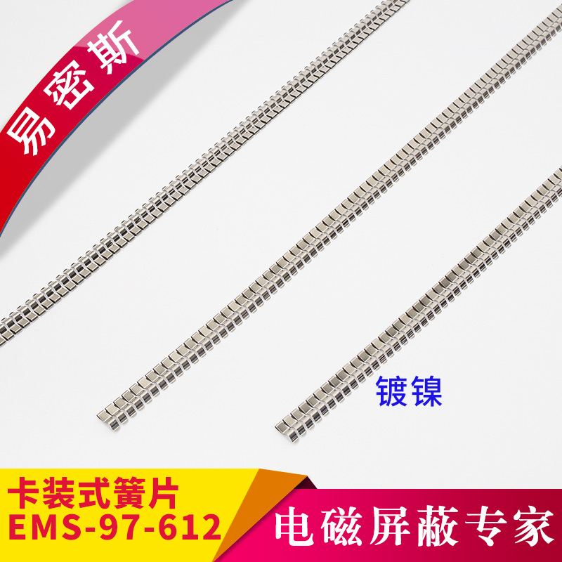 易密斯™鈹銅簧片由具有電磁兼容屏蔽效果的進口鈹銅合金C17200制成,具有優秀的抗壓性、回彈性和耐腐蝕性,并提供很好的寬頻電磁屏蔽效果,特別適用于通訊機柜、電腦、屏蔽室/門、面板及插拔件的間隙填充。易密斯™鈹銅簧片現有60余款標準件可供選擇,同時可支持定制。