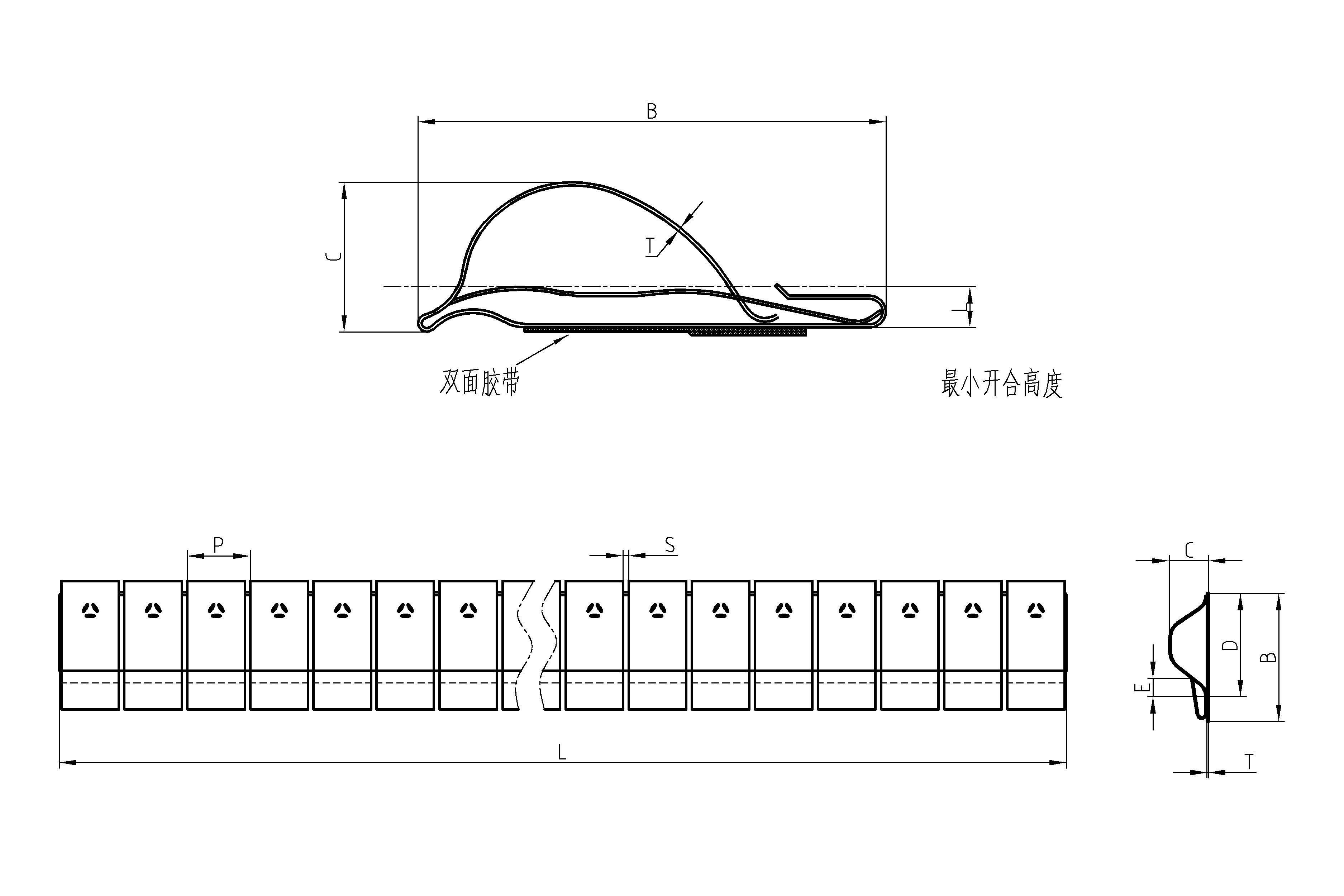 圖1 U形鈹銅簧片外形示意圖     作為國內知名電磁屏蔽材料供應商之一,易密斯(EMS)擁有眾多高度復雜的,專有的屏蔽和接地技術。其產品創新性對于實現卓越的性能和參數組合是十分必要的。從眾多產品配置,電鍍和安裝技術,到全系列低壓縮力要求和高傳輸阻抗特性,易密斯推出的屏蔽簧片或接地產品適合各種屏蔽應用。